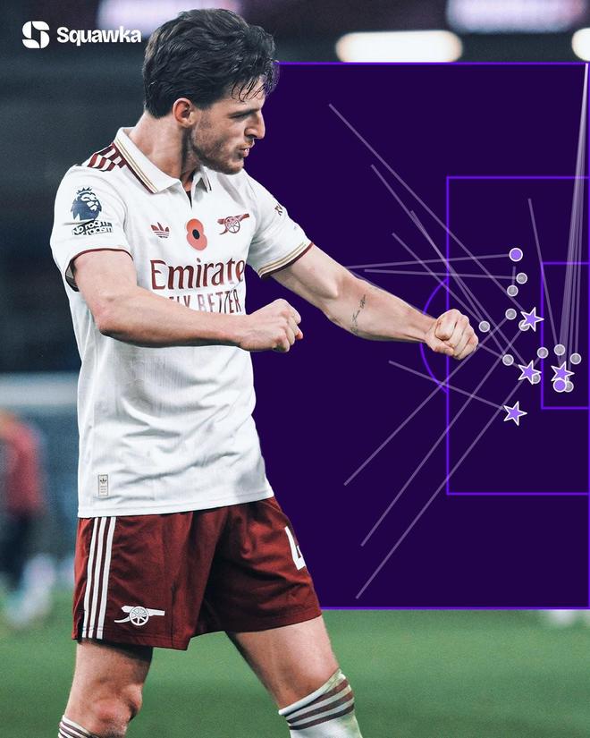 本赛季到目前为止,赖斯在各项赛事为阿森纳出场16次,这名英格兰中场斩获2球4助攻,他在创造进球机会方面也有极其出色的发挥。